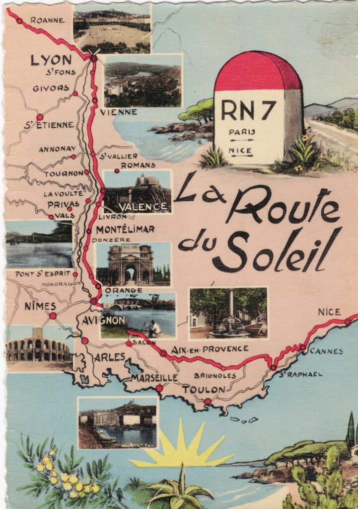 Plus longue route nationale de France, la Nationale 7, reliait Paris à Menton sur près de 1 000 kilomètres. Les origines de la Nationale 7 remontent à l’Antiquité romaine. Elle est progressivement aménagée, et prend le nom de Route Impériale 8 sous Napoléon puis Route royale n° 7, avant de devenir sous la IIIe République, la « route nationale 7 ». Elle est vite surnommée la « route des vacances » suite à l’introduction des congés payées en 1936. En 1955, Charles Trenet l’immortalise dans sa chanson « Route Nationale 7 ». Avec l’augmentation de la circulation, la Nationale 7 devient aussi célèbre pour ses embouteillages avant de perdre de son utilité face aux autoroutes A6 et A7.